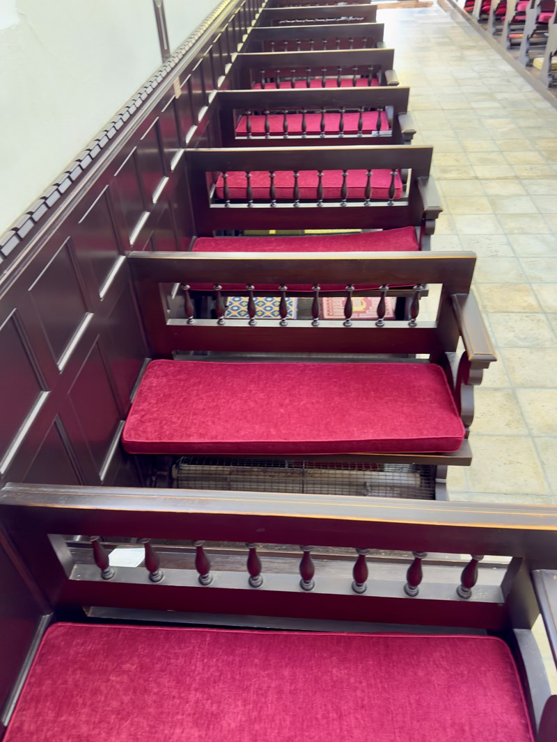 On Sunday 7th September 2025, New pew cushions were dedicated by Revd Alison Hart during the morning service. These are much more comfortable than the previous felt runners and will be appreciated by churchgoers (and concert- goers) for years to come. They were finded by kind donations from a legacy of the late David Cobbett and in memory of Brenda Wilson (Alison's late Mother). THANK YOU!